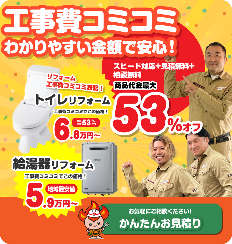 当社のリフォーム価格はすべて工事費込み!お客様にわかりやすく、選びやすいを最優先に考えました。