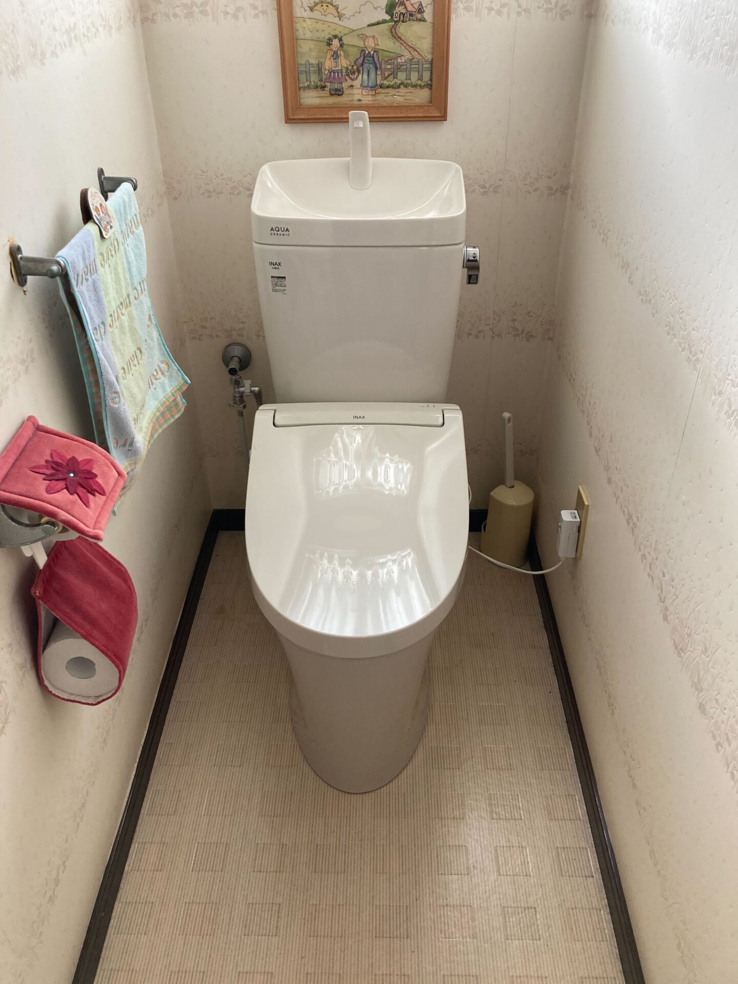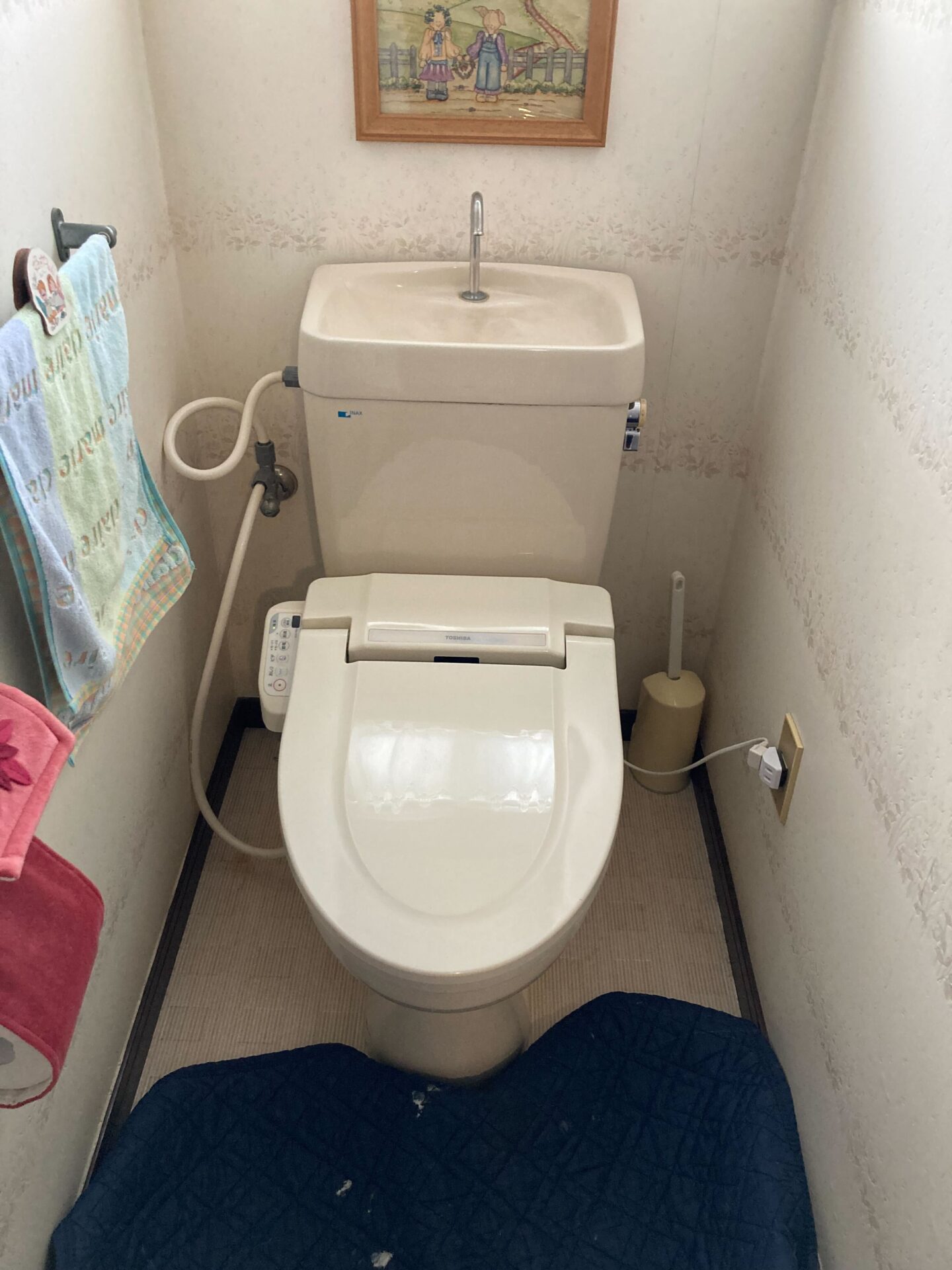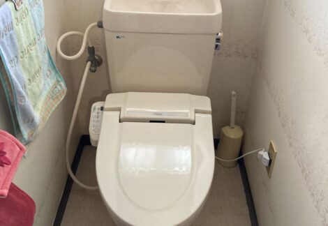 タンクは交換後も同じく手洗い付のものを。ウォシュレットは袖リモコンタイプから壁リモコンタイプのものに変更です。