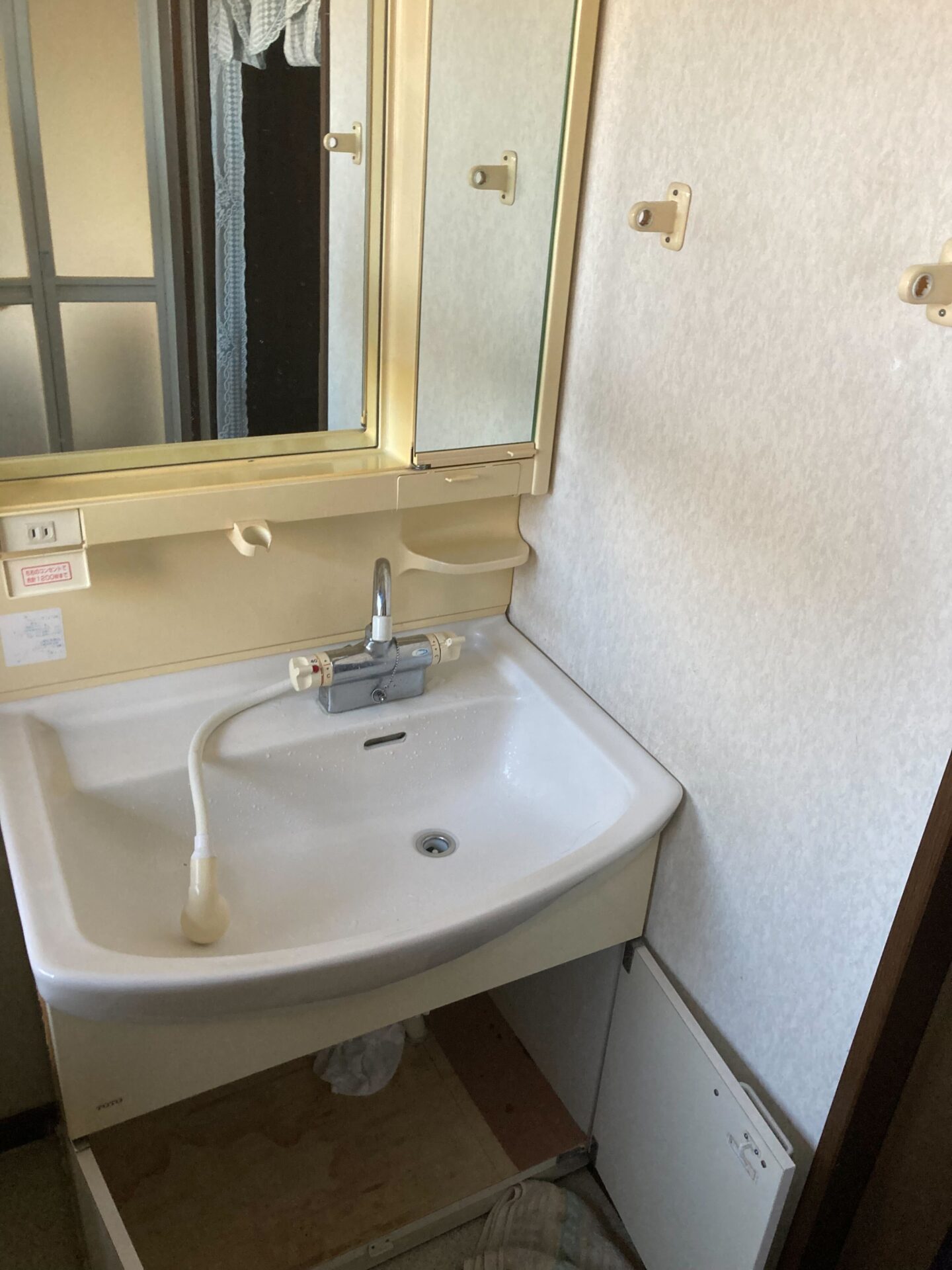 もともとお使いの洗面化粧台のシリーズは廃盤から25年以上経過しており、補修部品の供給なども終了していた為、補修や一部部品の交換が難しく、今回は新しくすることに。